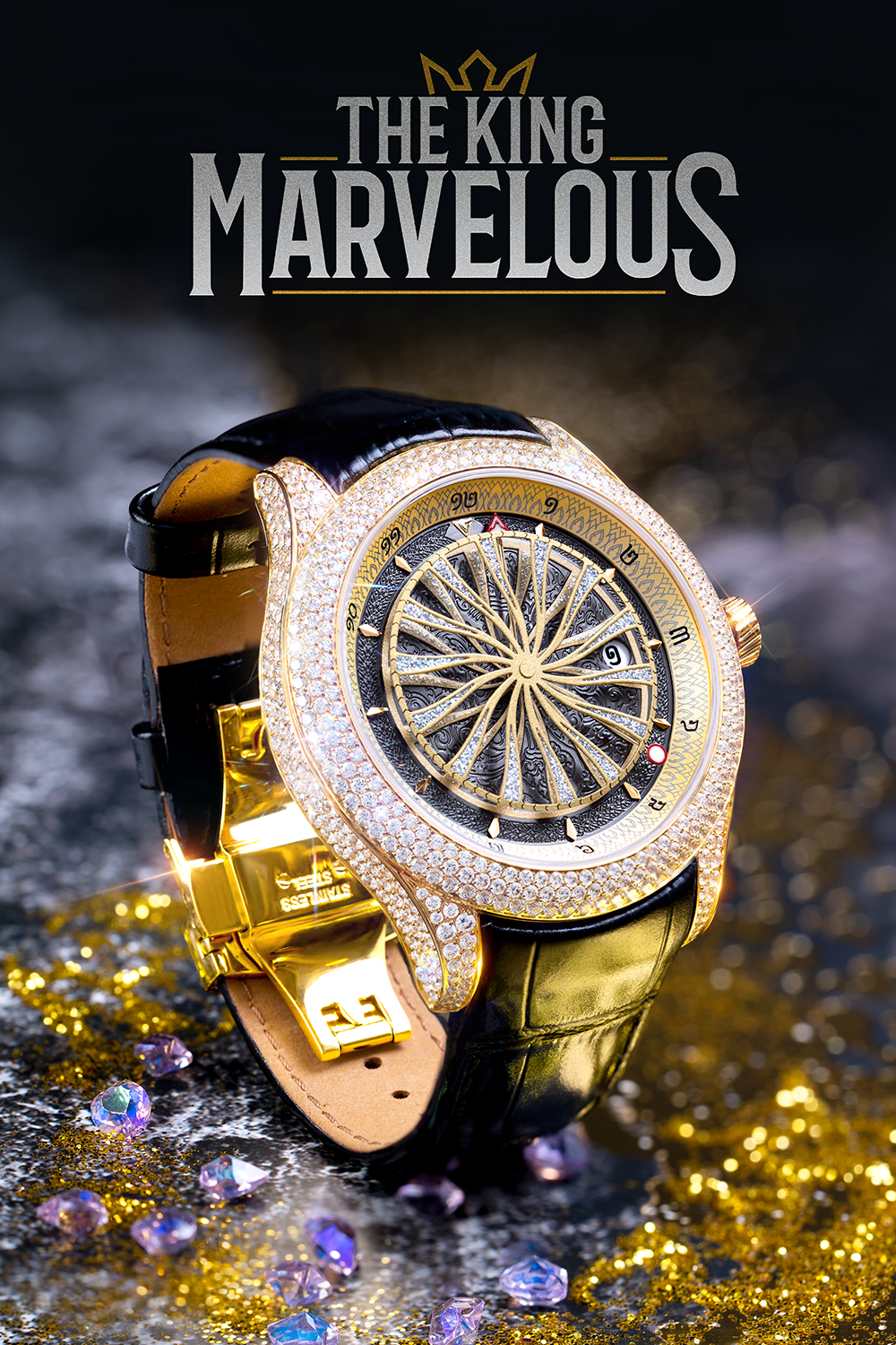 a beacon of sophistication designed for exclusive events. The stainless steel case, crowned with high class diamond, transitions seamlessly to a sapphire crystal dial with luminous hands and multifunctional chronograph sub-dials. Wrapped in the finest leather, the engraved deployment clasp adds exclusivity. Powered by a high-precision automatic movement, encapsulating refined taste. Housed in a bespoke box, this timepiece is not just an accessory; it's a statement of extravagance for those who embrace the extraordinary.
